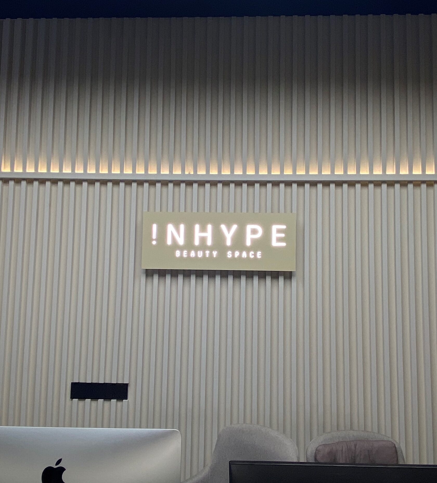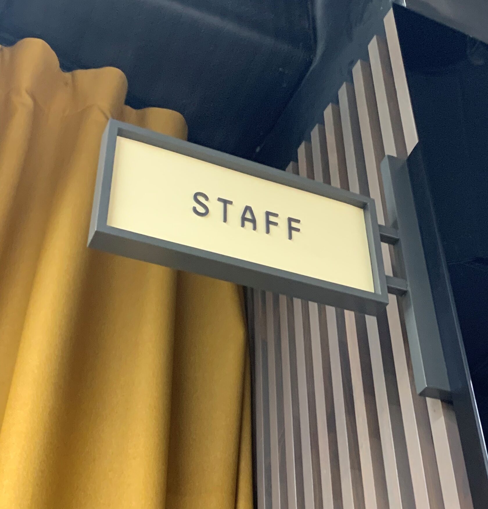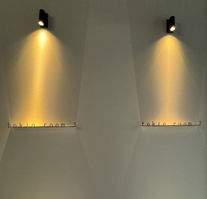 Навигационные таблички с обозначением предназначения комнат и номера. Изготовлены из нержавеющей стали. Крепятся на короб из нержавеющей стали с отступом от стены. подсвечивается светильником теплого свечения